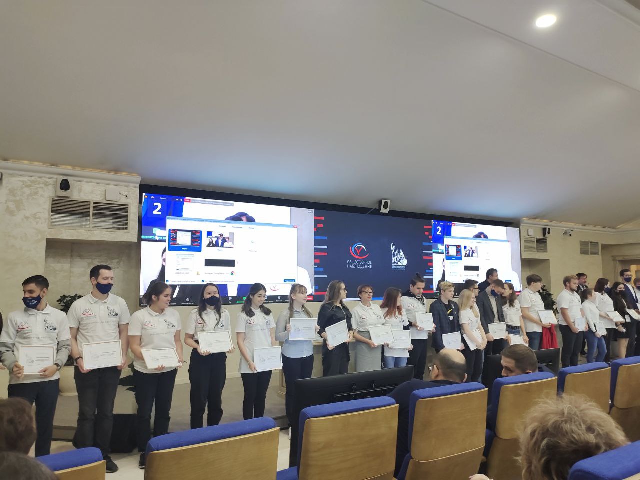 В завершении открытия Максим Григорьев и Владислав Гриб наградили благодарностями волонтёров Ситуационного центра ОП РФ и представителей общественных палат регионов за участие в обеспечении контроля за выборами.